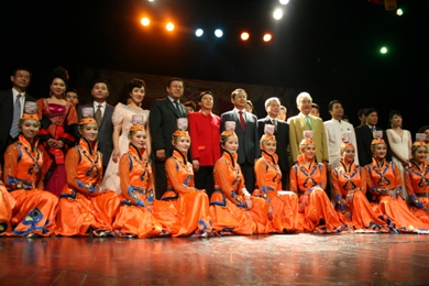 吕大使和国侨办领导祝贺演员们演出成功 |