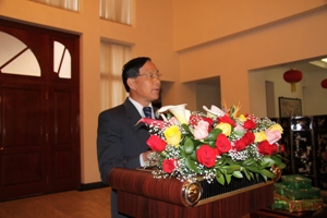 高大使在讲话中向大家致以热烈的节日问候和新春祝福,感谢大家为中哥关系持续健康发展作出的贡献,同时,介绍2010年国际国内形势、中哥两国在各个领域关系的发展情况,以及对2011年的展望。他强调指出,回顾过去,展望未来,任重道远。我们既有经济、社会发展成功带来的喜悦,也有因中国人口众多,人均GDP仍排在世界100位以后,还有5000万贫困人口和许多不尽如人意的困难和矛盾所带来的担忧。但我们坚信,在中国共产党的正确领导下,中国人民一定能够排除万难,坚持科学发展观,加快经济方式的转变,开创党和国家建设的新局面,利国利民,为世界稳定与和平作贡献。