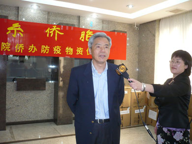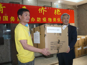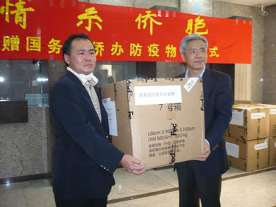 2009年5月6日,来自墨西哥中华会馆、墨西哥华人华侨社团联合总会和墨西哥台湾商会的代表在中国驻墨西哥大使馆接受国侨办赠送的口罩。