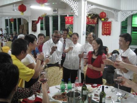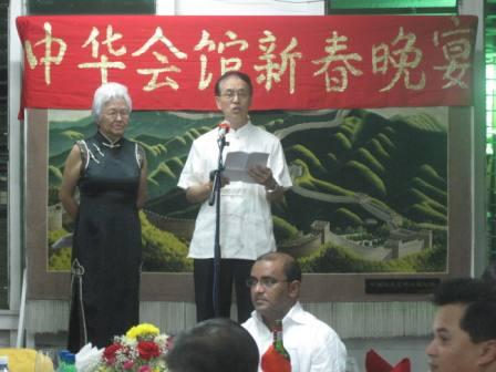 2011年2月17日,圭亚那中华会馆举行新春晚宴,庆祝中华民族传统节日元宵佳节。贾格迪奥总统、海因兹总理夫妇、驻圭亚那大使于文哲以及会馆全体执委、旅圭侨界代表等近200人出席。