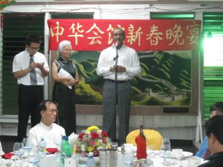 中华会馆黄浦源会长首先致辞。他说,华人自1852年到达圭亚那以来,辛勤劳作,互帮互助,与圭各族裔人民和睦相处,共同为建设这个美丽的第二故乡付出了无数汗水和心血。他感谢圭政府和驻圭使馆为旅圭华人华侨生存和发展提供的帮助和支持,表示旅圭华人华侨将继续发扬优良传统,遵守当地法律,尊重各民族宗教信仰和风俗习惯,与各族人民和睦相处,共同为圭亚那经济社会发展不懈努力。