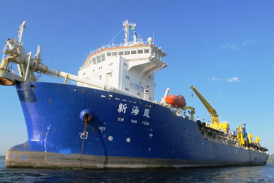 中交上海航道局巴西公司总经理虞延华、“新海凤”号船长曹承凯结合视频短片、幻灯片等形式生动地介绍了该轮的具体情况及特点、疏浚作业的具体流程及“新海凤”在巴西的主要业绩等。作为国内最大的耙吸挖泥船,“新海凤”号船舶总长160.20米,型宽27米,型深11.80m米,装机总功率可达23200kW,最大挖深达到45米。“新海凤”号的各项技术指标已达世界一流水平。目前,中交上海航道局巴西公司正准备扩大其在巴业务,并对公司在巴发展前景充满信心。
