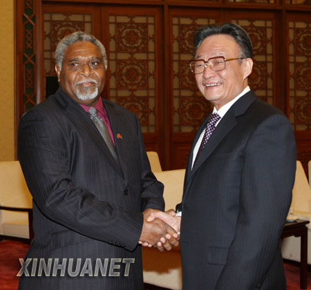 新华社北京2月25日电(记者徐松)全国人大常委会委员长吴邦国25日下午在人民大会堂会见了瓦努阿图议长阿沃克。