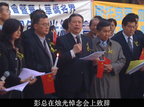 2009年5月11日晚,纽约华人社团联席会和纽约华侨华人各界100余人在法拉盛温莎学校前广场集会,点燃烛光悼念四川汶川地震遇难者,纪念四川抗震救灾一周年。彭克玉总领事应邀出席活动并致辞。