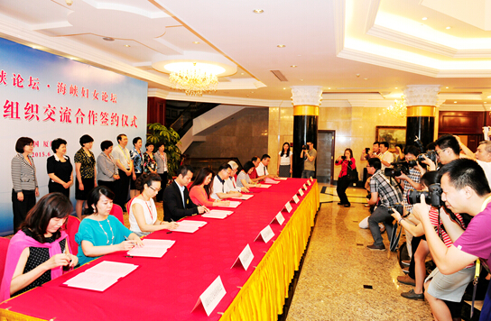 13日下午,海峡妇女论坛在厦门首次举行闽台基层妇女组织交流合作签约仪式。随着52个闽台基层妇女组织、家庭服务业协会和企业的签约代表陆续上台落笔签署协议文本,跨越海峡的合作金桥一一铺就。