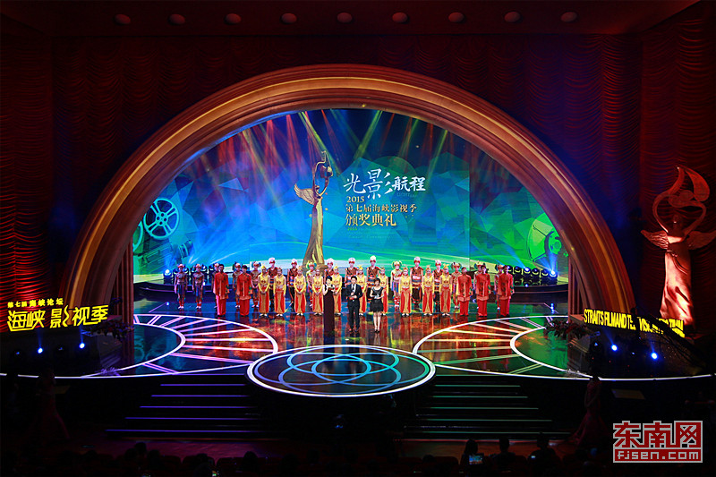 颁奖仪式以“光影航程”为主题,展现两岸影视交流合作历程与成就。阎晓明、梅小青、朱延平、蔡岳勋、张世,吕丽萍、徐小明、修杰楷、孙耀威、蔡淑臻、林美照等两岸影视界名人亮相现场。台湾原住民鼓舞《木鼓祈福》、舞剧《丝海梦寻》片段、海峡两岸合拍片主题歌串烧《携手》、歌曲《两岸一家亲》等精彩节目赢得阵阵掌声。