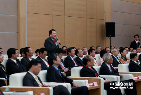 15日,中共中央政治局常委、全国政协主席俞正声在厦门会见了国民党副主席林丰正以及参加第五届海峡论坛的两岸各界人士代表。图为参与会见台湾代表在会见中发言。(中国台湾网 普燕摄)
