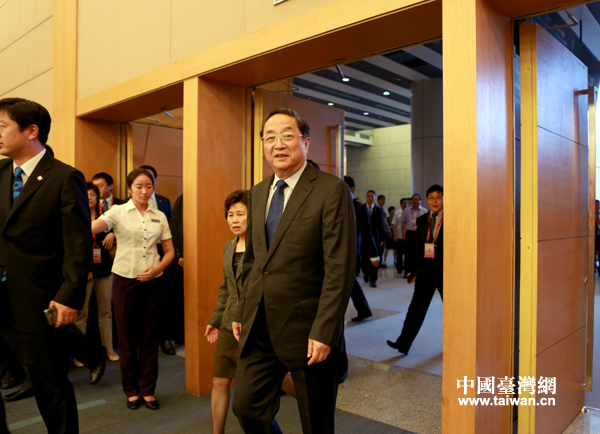 15日,中共中央政治局常委、全国政协主席俞正声在厦门会见了国民党副主席林丰正以及参加第五届海峡论坛的两岸各界人士代表。(中国台湾网 普燕摄)