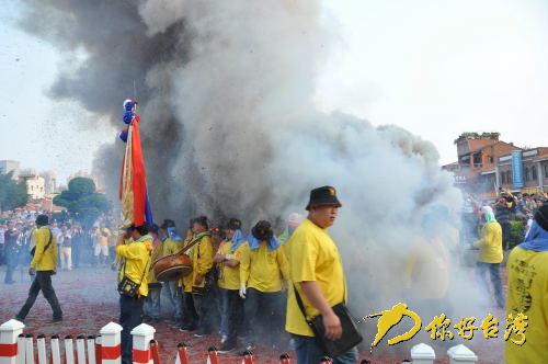 汇集千余名信众的台湾新港奉天宫,首次和分灵到福建的第一家妈祖宫庙的永春陈坂宫合体进行了妈祖的巡境,报马仔、路扫、头旗、头灯、金虎爷会、舞凤轩、威扬团……首度合体巡境的“法器队”,由手持36个哨角、2个马头锣,分列2队形成。“妈祖信仰在台湾有着很浓厚的氛围,而其的发祥地在此,所以我们这次来汇集了台湾各地奉天宫的宫友宫庙,一起来进行妈祖文化的交流。”台湾新港奉天宫的阮国峰告诉记者。巡境过程中,“金虎爷爱吃炮”的表演最为吸引人,只见信众在地上铺满像地图一样的鞭炮,中间放一堆,抬着金虎爷的信众踩着点燃的鞭炮走向天后宫,其精彩的表演博得喝彩声一片。