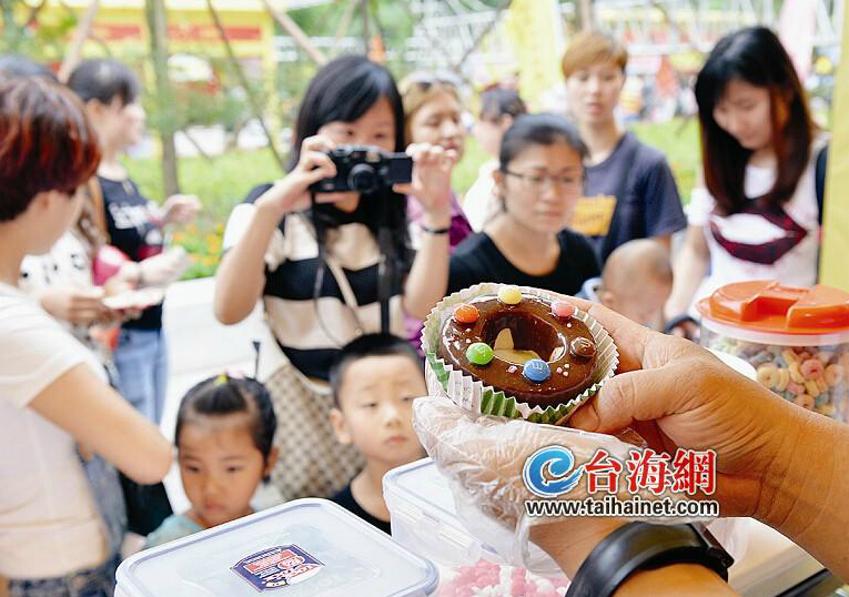 这种花式冰淇淋甜甜圈是台商刘国祥的独家创意,胞妹刘嘉琪之前也是通过海峡论坛的庙会活动,在人和路小吃街站稳脚跟。这次在妹妹的引荐下,他把这种创意小吃带到了本届特色庙会上。没想到第一天就赢得了高人气,制作“甜甜圈”的工作人员都快忙不过来了!“小朋友,这个冰淇淋好吃吗?”捧着冰淇淋一勺一勺舀着,唇边沾满了糖粉和巧克力,小朋友顾不上回答,只是拼命点头。花式冰淇淋甜甜圈不仅外观上吸睛,选材上也强调自然和健康,绝对是这个夏夜的消暑佳品.。