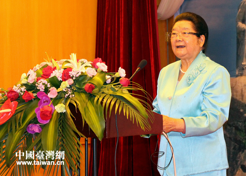 中国关心下一代工作委员会主任顾秀莲在开幕式上回顾论坛五年来取得的成就。(中国台湾网 高斯斯 摄)