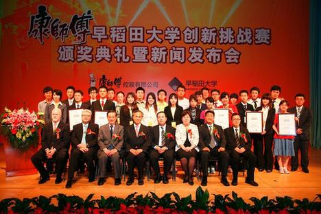 11日,一场以“康师傅的创新实践”为主题的创新挑战赛在北京大学百年讲堂落下帷幕。本届创响新生代”康师傅-早稻田大学创新挑战赛自2010年1月启动以来,一直受到社会创新人士和大学生的积极响应,在大赛组委会收集到的近300份提案中,历经专业评委严格的评审,最终有20份提案过关斩将,最终入围决赛。这20份提案内容涉及产品、营销、服务及公益等不同层面。6月11日上午,20支团队进行提案面呈,之后经历6人专家评委团的严格“拷问”,最终“面!面俱到”提案团队、“Let's Noodle!客制化泡面自动贩卖机”提案团队和“康师傅Lifestyle动力快车”提案团队分别获得大赛金、银、铜奖,还有中国政法大学等五支团队荣获优胜奖。此外,根据官网票选结果,“最佳网络人气奖”颁发给了福州大学“活力树”提案团队。颁奖典礼在当日下午的北大百年讲堂多功能厅进行,主办方康师傅、早稻田大学的高层领导、北京大学等高校嘉宾与20个参赛团队,以及来自全国的近50家媒体共同见证这一激动人心的颁奖时刻。之后,在决赛队伍中预计有19名参赛者每人将获得两年超过40万的奖学金,入读世界名校早稻田大学。