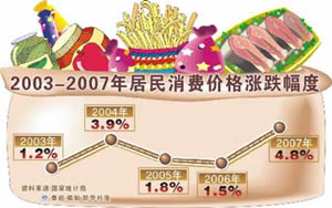 2007年居民消费价格指数(CPI)上涨4.8%,成为1997年以来年度最高涨幅 新华社发