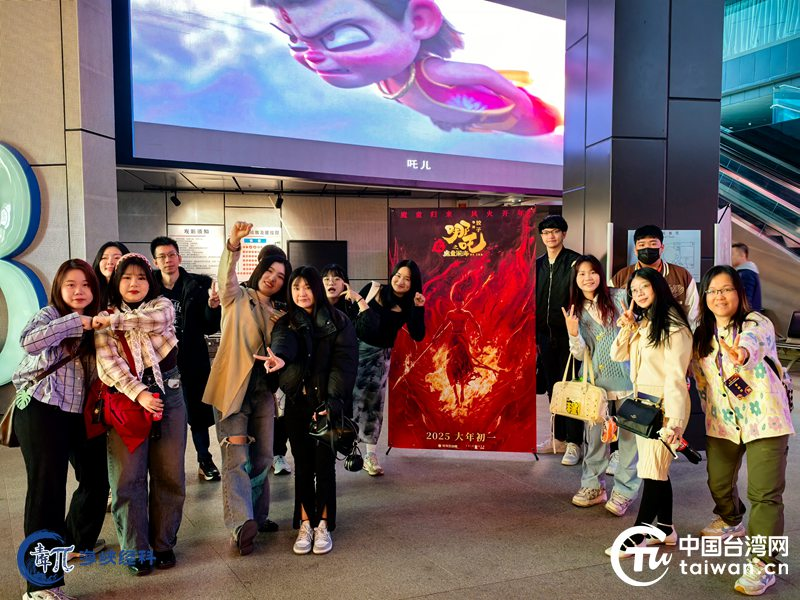 台青观看电影《哪吒之魔童闹海》。(中国台湾网发)