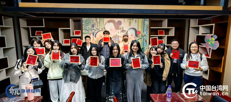 台青体验非遗木版年画。(中国台湾网发)