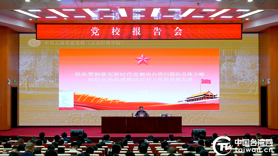 中国台湾网4月15日讯 4月10日,云南省委台办主任邓恒源到省委党校,围绕“坚决贯彻落实新时代党解决台湾问题的总体方略 站位全局高度推动新时代对台工作高质量发展”主题作台海形势专题讲座,省委党校常务副校(院)长杨季主持。省委党校青年干部培训班、乡镇(街道)党(工)委书记全体学员,以及省委党校部分教职工400人参加。