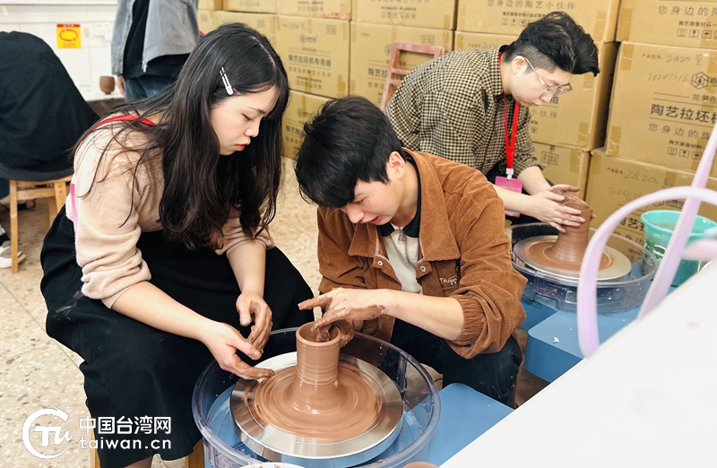 两岸青年在交流坭兴陶制作技艺。(中国台湾网发)