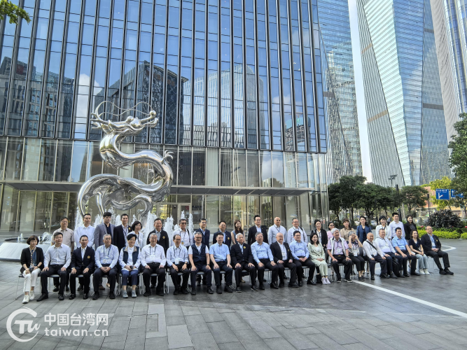 参访团成员在鹏鼎时代大厦前合影。(中国台湾网发)