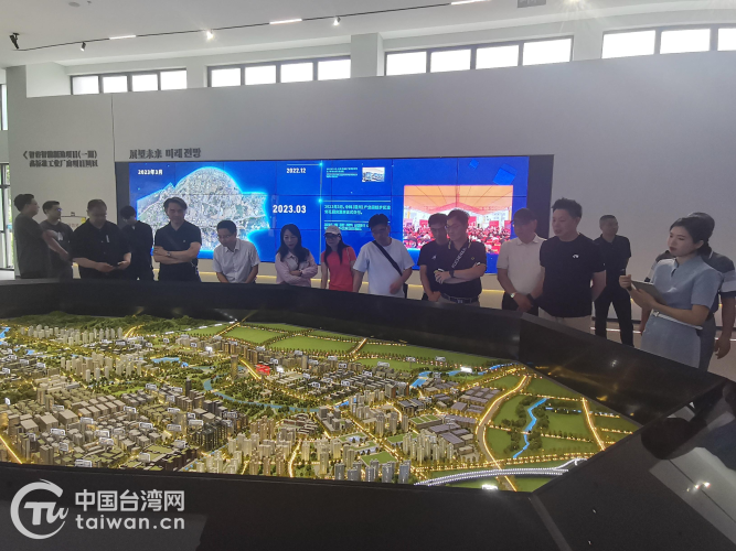 参访团参观中韩(惠州)产业园规划沙盘。(中国台湾网发)