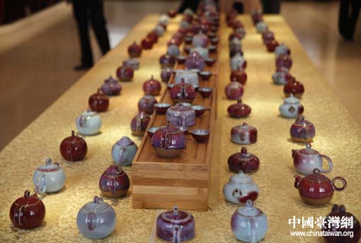 两岸记者走进河南许昌禹州,感受钧都魅力。图为禹州神垕孔家钧窑作品(中国台湾网 吴捷 摄)