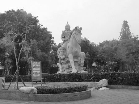 台南市延平郡王祠的这座郑成功石雕像,是2008年5月由福建省泉州市赠送的,高6.9米,重200吨,耗资新台币近千万元,是目前台南市最高大的郑成功雕像。