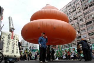 台湾民众用“牛粪气球”反美国牛肉。(网络资料图)