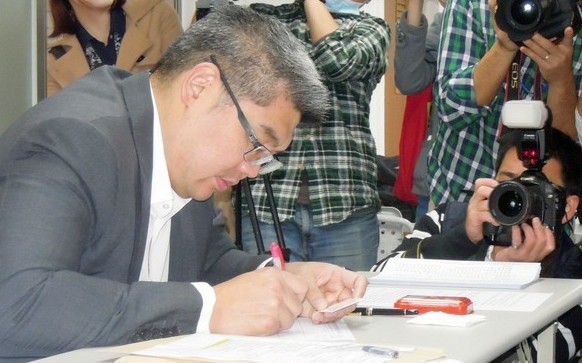 国民党中央委员连胜文上午到市党部领表。(台媒图)
