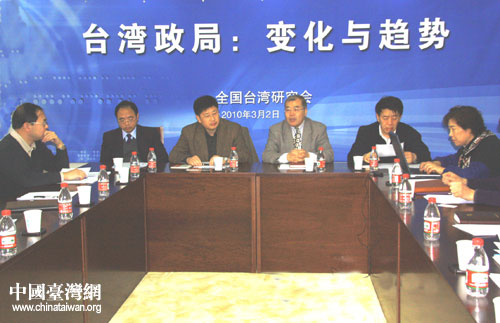 中国台湾网3月2日北京消息 今天上午,全国台湾研究会在北京召开研讨会,来自中国社会科学院、厦门大学台湾研究所、北京联合大学台湾研究院、中华文化发展促进会等研究机构和高校的十余位台湾问题专家出席了会议,就岛内政局的变化及发展趋势进行了探讨和交流。