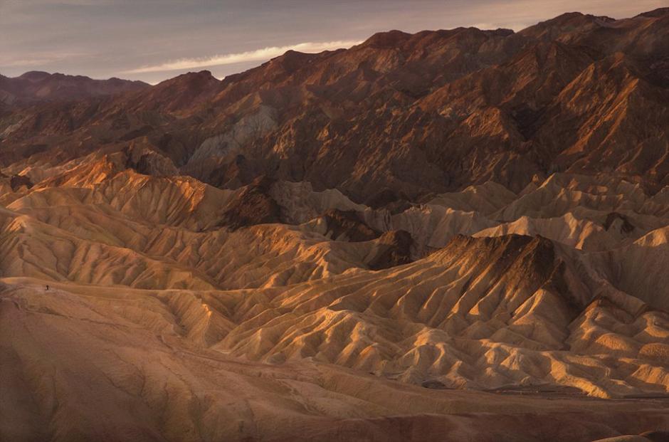 死亡谷是北美最为干旱和最低的地区,并保持着56.7℃的全世界最高气温记录。摄影师大卫在为期两天的探险期间记录下了死亡谷浩淼壮观的景象,为了拍摄到最完美的照片,原本患有恐高症的他不惜爬上了高650英尺(约198米)的地势险峻的阿马戈萨岭(Amargosa Range)。狭窄险峻的山脉让他十分紧张不安,但独特的地理位置也让他能够全方位目睹死亡谷壮观的景象。