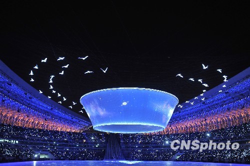 2009年10月16日晚,第十一届全国运动会在济南奥体中心拉开帷幕。开幕式上的文艺表演美轮美奂。 中新社发 崔鹏森 摄