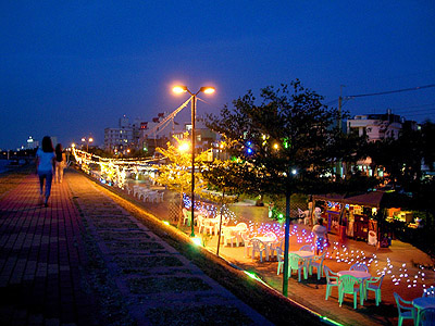 饱餐一顿后,到东港河堤走走是不错的选择,也可以在这里的露天咖啡店点杯饮料,享受悠闲时光。 (来源:大台湾旅游网)