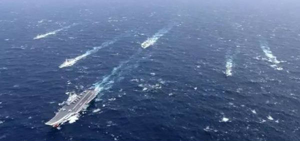 中国海军航母编队在海上航行。(图片源自中国军网)