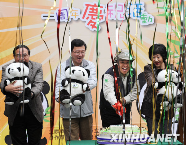当日,台北市动物园举行活动庆祝大熊猫“团团”、“圆圆”首次在台湾公开亮相一周年。熊猫馆开馆一年来,参观人数已突破360万人次。赠台大熊猫“团团”、“圆圆”2008年12月23日到达台北动物园,2009年1月24日首次在台公开亮相,与台湾民众见面。新华社发(吴景腾 摄)
