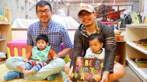 Jay Lin(左)和他的同性伴侣Jona Chen共同抚养一对双胞胎儿子。(BBC)