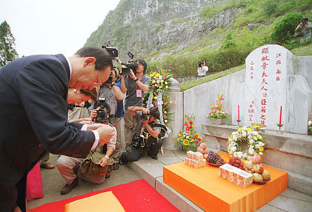 蒋孝严赴大陆祭祖 在母亲坟前上香