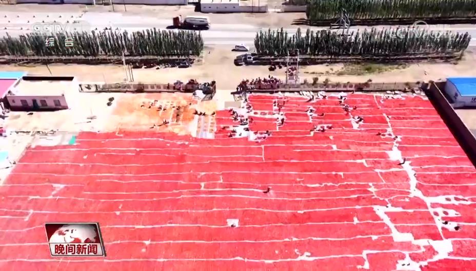 央视网消息:提到新疆的美食,甜美的瓜果对您来说可能已经很熟悉了,那您知道新疆还有一项“红色产业”吗?伏热已过,金秋将至,我们带您走进天山脚下,红色的田野里,去看一看那里的丰收故事。