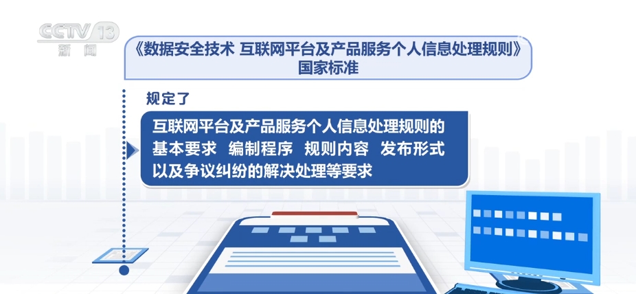 《数据安全技术 互联网平台及产品服务个人信息处理规则》国家标准,规定了互联网平台及产品服务个人信息处理规则的基本要求、编制程序、规则内容、发布形式以及争议纠纷的解决处理等要求。