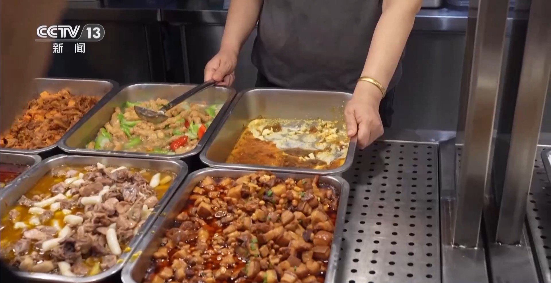民主村社区食堂负责人 李恒:如果我们也采用称重或者是卖份饭的话,可能食堂的竞争力就没有那么强,吸引不了这部分年轻人到食堂来用餐。我们的荤菜,40%是偏麻辣一点的菜,口味更重一点的菜,年轻人也能够照顾到。