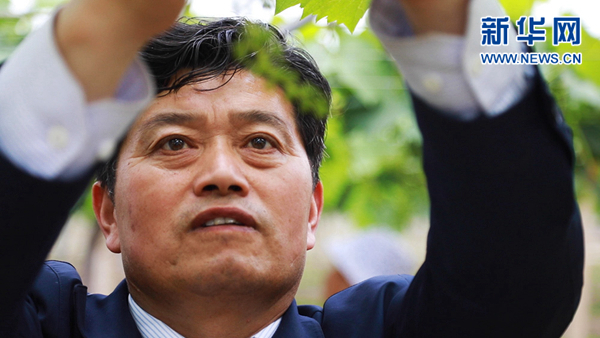 聂永平观察葡萄的生长情况(唐杨 摄)
