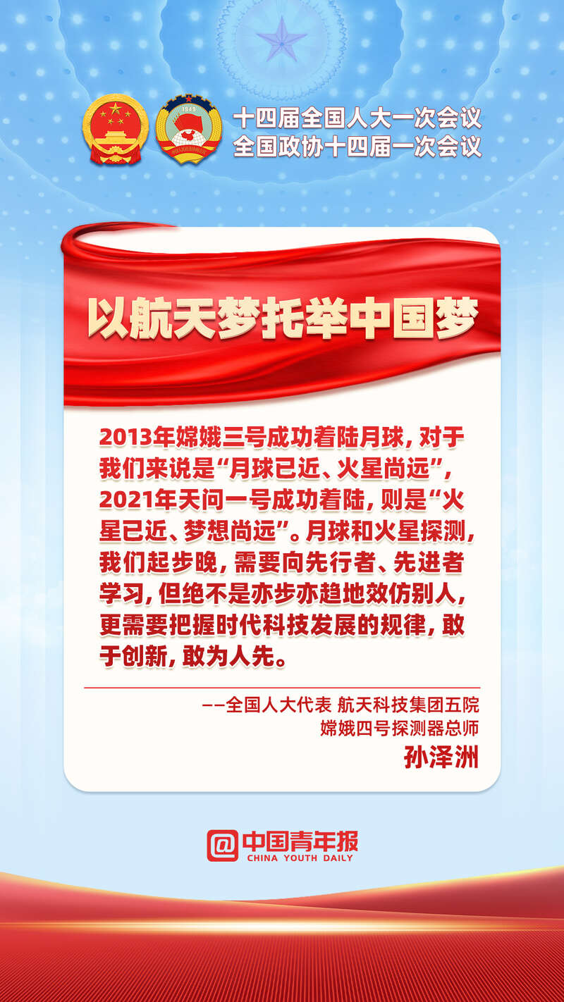 3月7日下午,十四届全国人大一次会议第二场“代表通道”在人民大会堂开启,来自基层一线的代表通民心,传信心。月球和火星探测背后有他们,刷新深海探测数据的背后有他们,不断突破“卡脖子”问题的有他们。点开图片,看个人目标如何与科技强国的图景实现“双向奔赴”。