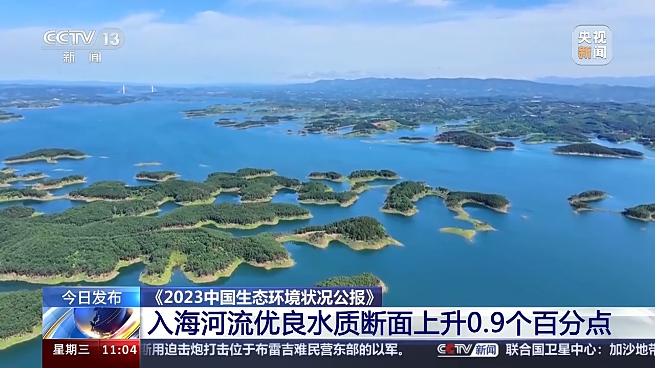 今天发布的《2023中国生态环境状况公报》显示:我国深入推进碧水保卫战,2023年印发实施《重点流域水生态环境保护规划》,地表水环境质量持续向好。