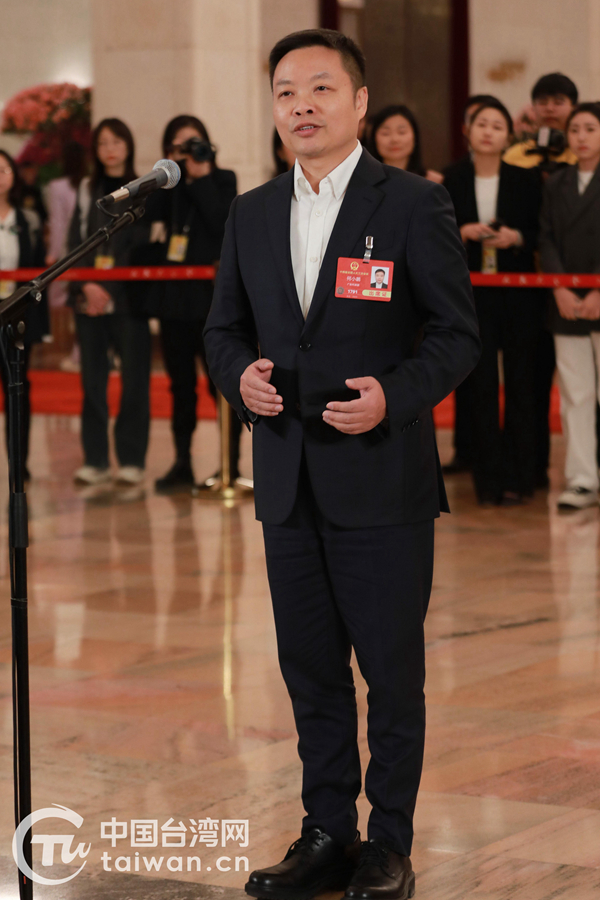 3月8日,第十四届全国人民代表大会第三次会议第二场“代表通道”集中采访活动在北京人民大会堂举行。这是全国人大代表蔡强接受媒体采访。(中国台湾网记者 李宁 摄)