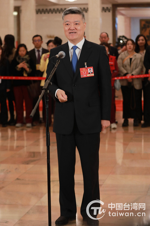 3月8日,第十四届全国人民代表大会第三次会议第二场“代表通道”集中采访活动在北京人民大会堂举行。这是全国人大代表盛弘接受媒体采访。(中国台湾网记者 李宁 摄)