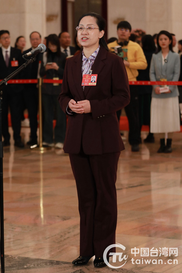 3月8日,第十四届全国人民代表大会第三次会议第二场“代表通道”集中采访活动在北京人民大会堂举行。这是全国人大代表杨宝玲接受媒体采访。(中国台湾网记者 李宁 摄)