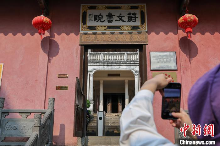 4月4日,“侨”见海南自贸港主题活动走进文昌孔庙,图为骑楼图书馆吸引活动嘉宾参观。中新网记者 骆云飞 摄