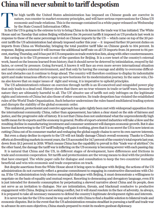 本文编译自《中国日报》4月10日社论
