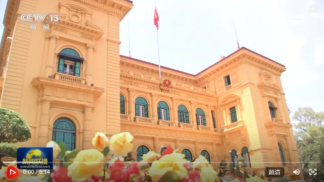 4月15日上午,中共中央总书记、国家主席习近平在河内主席府会见越南国家主席梁强。