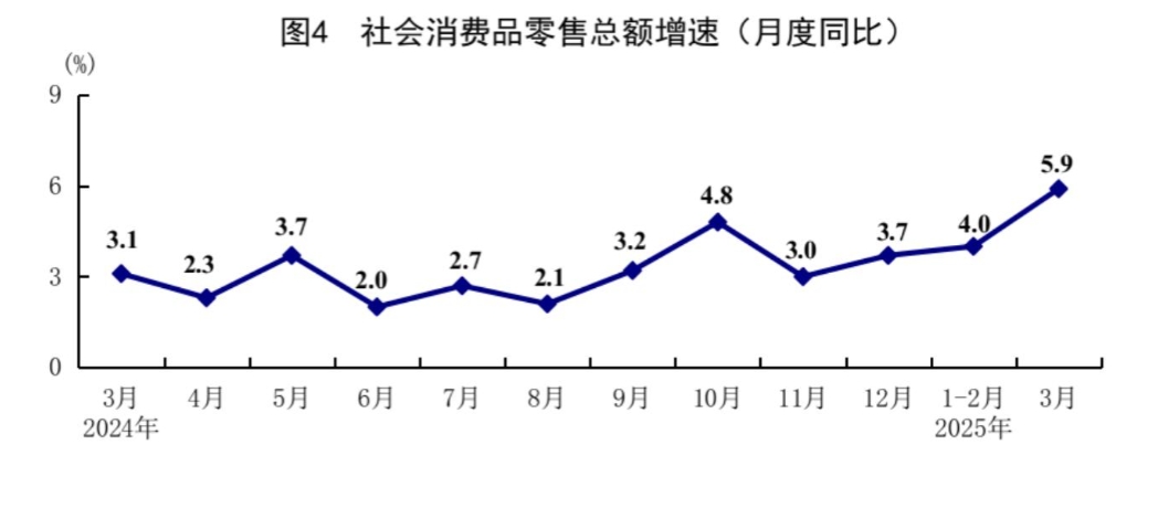 去年9月26日,中央政治局会议果断部署了一揽子增量政策,对稳定经济发挥了关键作用。今年我国宏观政策更加积极有为,前期出台的宏观政策和持续扩容加码的增量政策叠加发力,有效扩大了需求、促进了生产、激发了活力、增强了信心。3月份,社会消费品零售总额同比增长5.9%,增速创一年来新高。