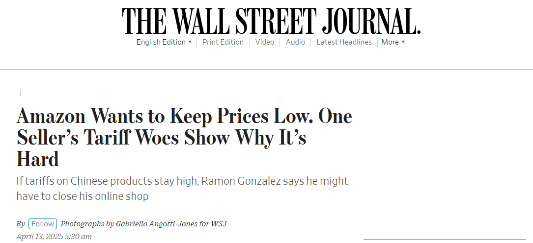 美国关税的冲击从大企业已经蔓延至小商家,亚马逊卖家同样深陷困境。