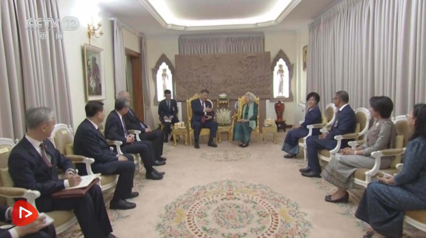 4月17日晚,国家主席习近平同柬埔寨太后莫尼列在金边王宫举行会见。